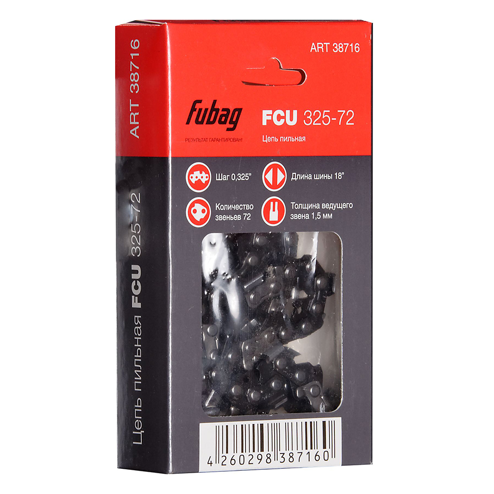 Характеристики Цепь шаг 0,325 толщина приводного звена FUBAG 1,5 мм 72 зв.