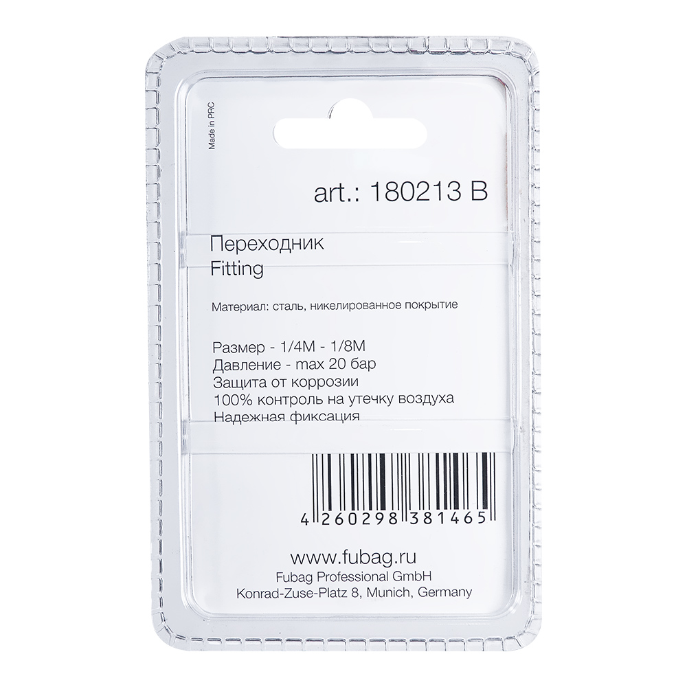 Характеристики FUBAG Переходник 1/4 дюйма M на 1/8 дюйма M, блистер 1 шт.
