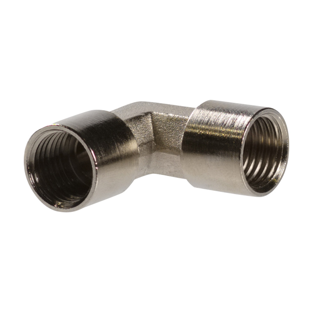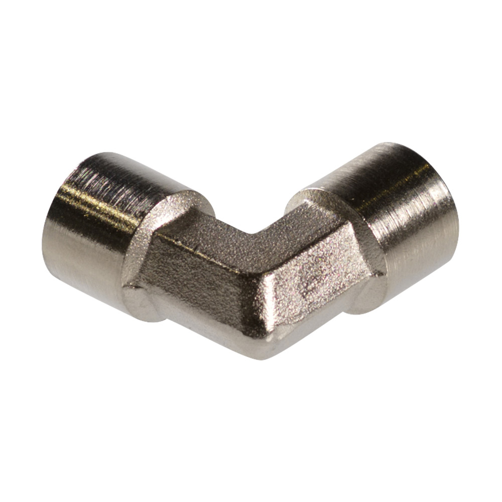 L-образный переходник (уголок) соединяет участки пневмосистемы под углом 90°. Крепление - резьба 1/4". Поставляется в блистере.