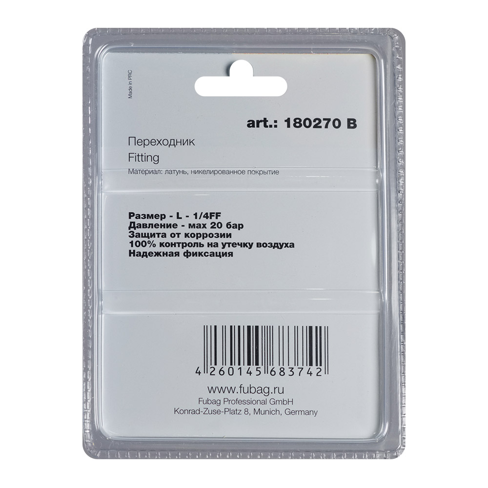 Характеристики FUBAG Переходник L - 1/4 дюйма FF, блистер 1 шт
