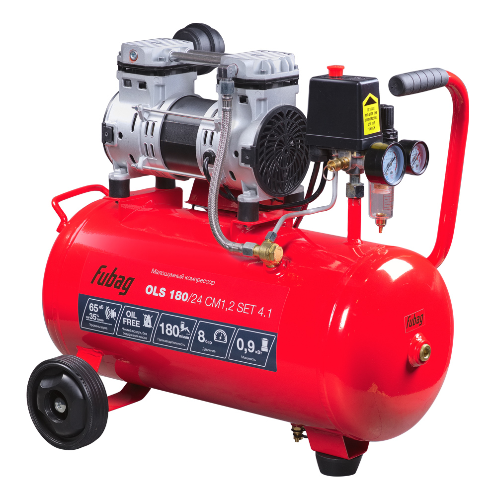 Безмасляный коаксиальный компрессор Fubag OLS 180/24 CM1.2 производительностью 180 л/мин - лучший выбор, если нужен чистый, без примесей масла, воздух при работе с краскопультами, аэрографами и другими окрасочными инструментами для проведения ответственных покрасочных работ.Компрессоры серии OLS - безмасляные малошумные машины, предназначенные для снабжения пневмоинструмента чистым, без примесей масла, воздухом. Идеальны для использования при проведении окрасочных работ, в автосервисах, небольших мастерских.
