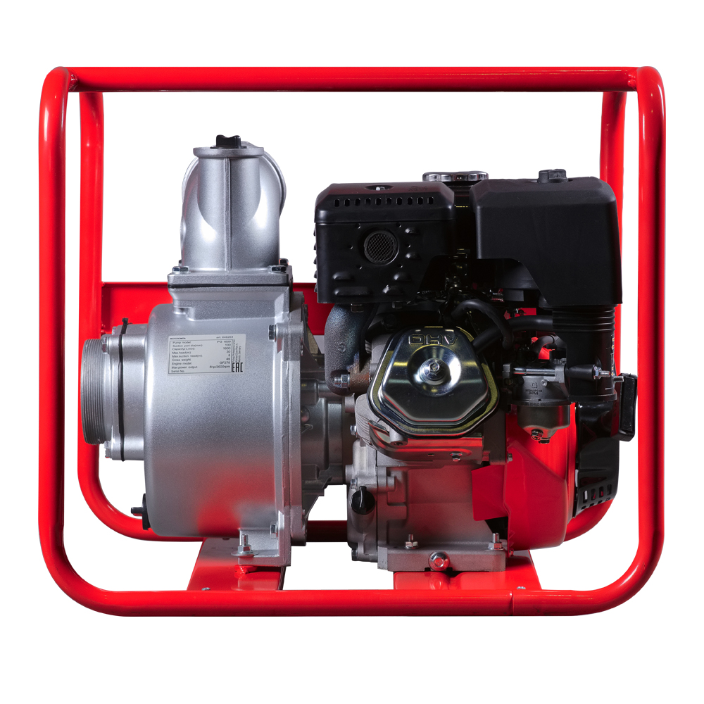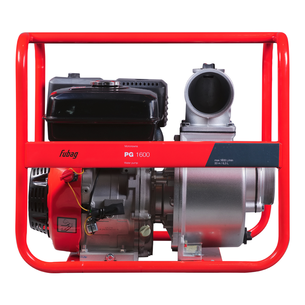Fubag PG 1600 – мощная и надежная самовсасывающая бензиновая мотопомпа. Быстро и уверенно справится с масштабными работами по перекачиванию чистой и слабозагрязненной воды с частицами диаметром до 4 мм. Производительность 1600 л/мин делают ее незаменимым помощником при вспомогательных работах на стройке и в сельском хозяйстве. Мотопомпа Fubag PG 1600 изготовлена на базе профессионального 4-х тактного бензинового OHV-двигателя Fubag и надежной насосной части смонтированных на усиленной сварной раме.Двигатель мотопомпы Fubag PG 1600 оснащен датчиком уровня масла, который предотвратит масляное голодание и заклинивание двигателя. Улита и рабочее колесо насосной части изготовлены из высокопрочного чугуна, а торцевые уплотнения из износостойких материалов, что обеспечивает длительный срок эксплуатации мотопомпы. В комплект поставки входят металлические патрубки, хомуты для фиксации шлангов и фильтр для всасывающего шланга.