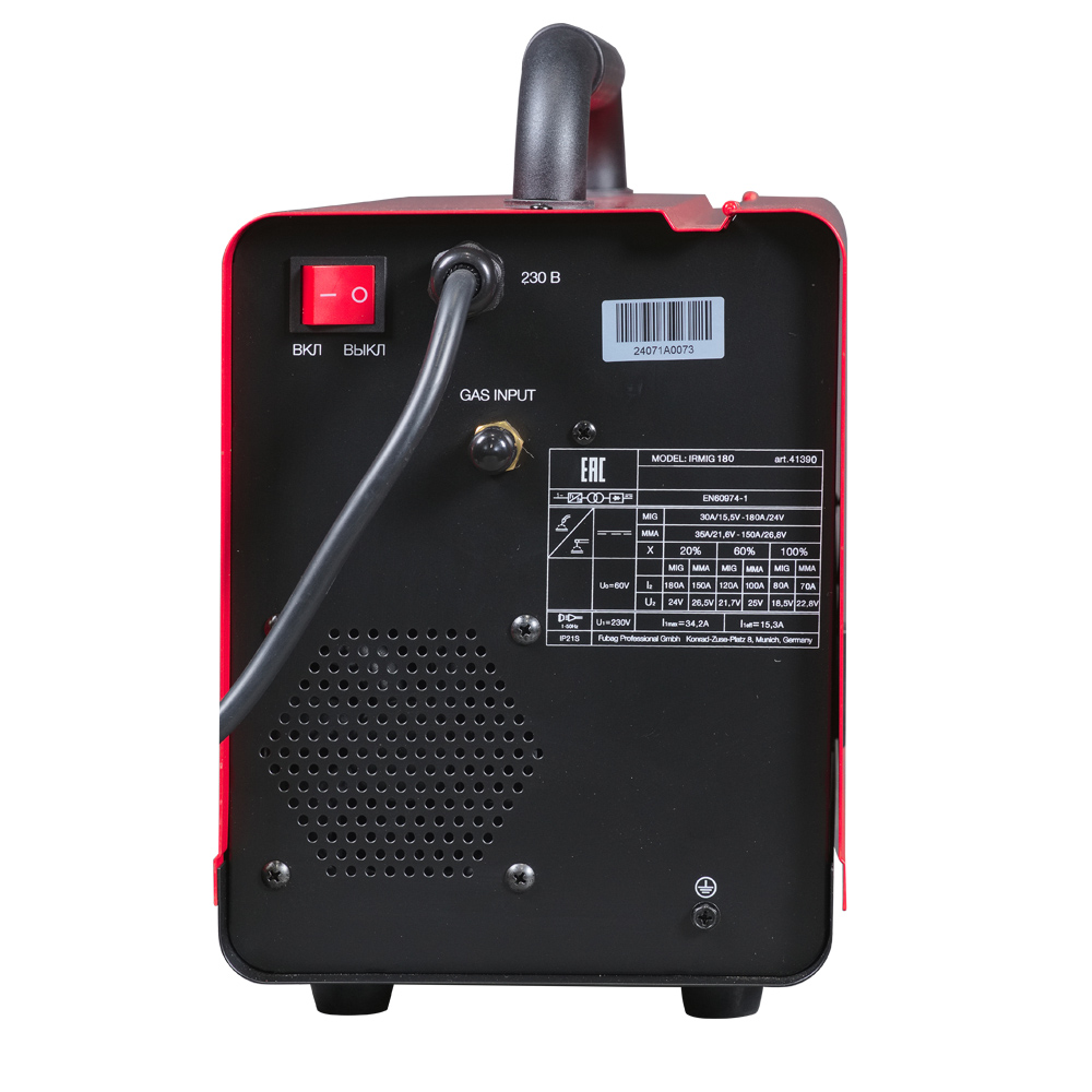 Сварочный инвертор FUBAG IRMIG 180 – высокопроизводительный сварочный полуавтомат, оптимален для проведения сварочных работ на производстве, стройке и в автомастерской. Аппарат позволяет проводить сварку в режимах MIG/MAG и ММА, оснащен евроразъемом для быстрого и безопасного подключения сварочной горелки, а также металлическим подающим механизмом. Благодаря плавной регулировке сварочного тока, скорости подачи проволоки и функции регулировки индуктивности, полуавтомат позволяет установить режим сварки для конкретной толщины и материала свариваемых заготовок.Сварочный инвертор IRMIG 180 работает в диапазоне тока 30-180А в режиме MIG/MAG омедненной проволокой диаметром 0,6-1 мм с катушкой весом до 5 кг и диаметром 200 мм. Универсальный держатель проволоки позволяет надежно крепить катушки внутри аппарата.